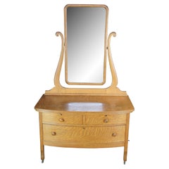 Condition: Original Vintage Condition Materials: Tiger Oak, Original Mirror, Brass Pulls Dimensions: Dimensions: 54.50”H x 35”W x 21”D Table Height: 30.25" This French Art Nouveau...
