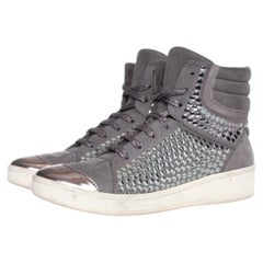 Stella McCartney, studded sneakers with metallic toe. One of the laces is missing the front part