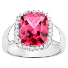 Hot Pink Topaz Ring White Topaz Halo 4.4 Carats