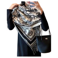 Christian Dior White & black cashmere Toile de Jouy Soleil wrap shawl 55x55 inch