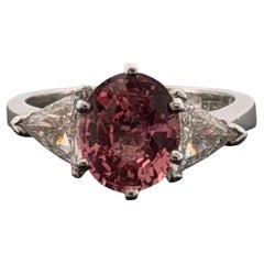 Platinum Padparadscha Sapphire & Trillion Diamond Ring 2.16ct Oval, 0.70ctw Diamonds, Size 5.75