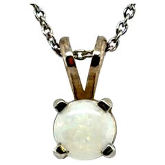 Gem Quality Opal Gemstone Necklace Pendant 14K White Gold Round Cabochon