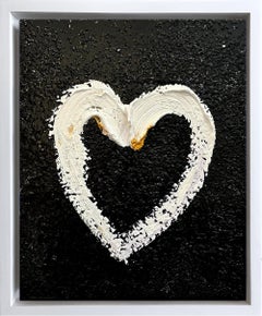 "My Across the Universe Heart" Black & White Oil Painting w White Floater Frame