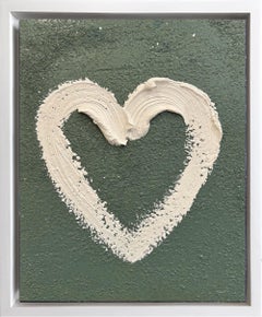 "My Junior Mint Heart" Emerald Green Oil Painting with White Floater Frame