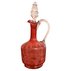 Pretty antique Victorian cranberry glass decanter, having a pretty antique Victorian cranberry