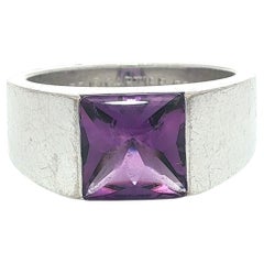 Cartier 1997 18k White Gold Cabochon Channel Set Amethyst Solitaire Ring sz 53