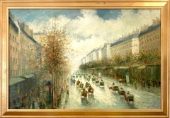 "At the Grands Boulevards" Parisian City Street Scene Impressionist Painting