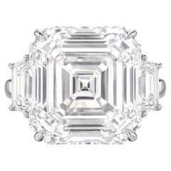 An exceptional and highly refined diamond ring centered by a magnificent 11 carat GIA certified square emerald cut diamond, notable for its striking architectural geometry, remarkabl...