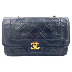 Chanel Diana CC Flap Bag Small Vintage Black Lambskin Leather with 24k Gold HW