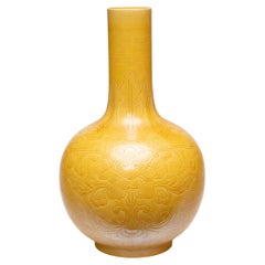 Chinese Golden Yellow Bottleneck Vase with Peony Sgraffito