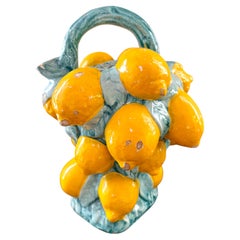 Delightful glazed earthenware lemon pitcher. Originally, hung