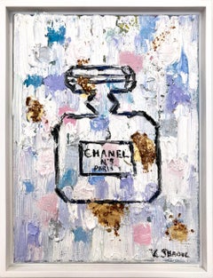 An elegant oil and mixed media painting on canvas depicting a Chanel N5 Bottle with the artist signature Dripping Dots style. This painting is signed on verso and it comes housed in ...