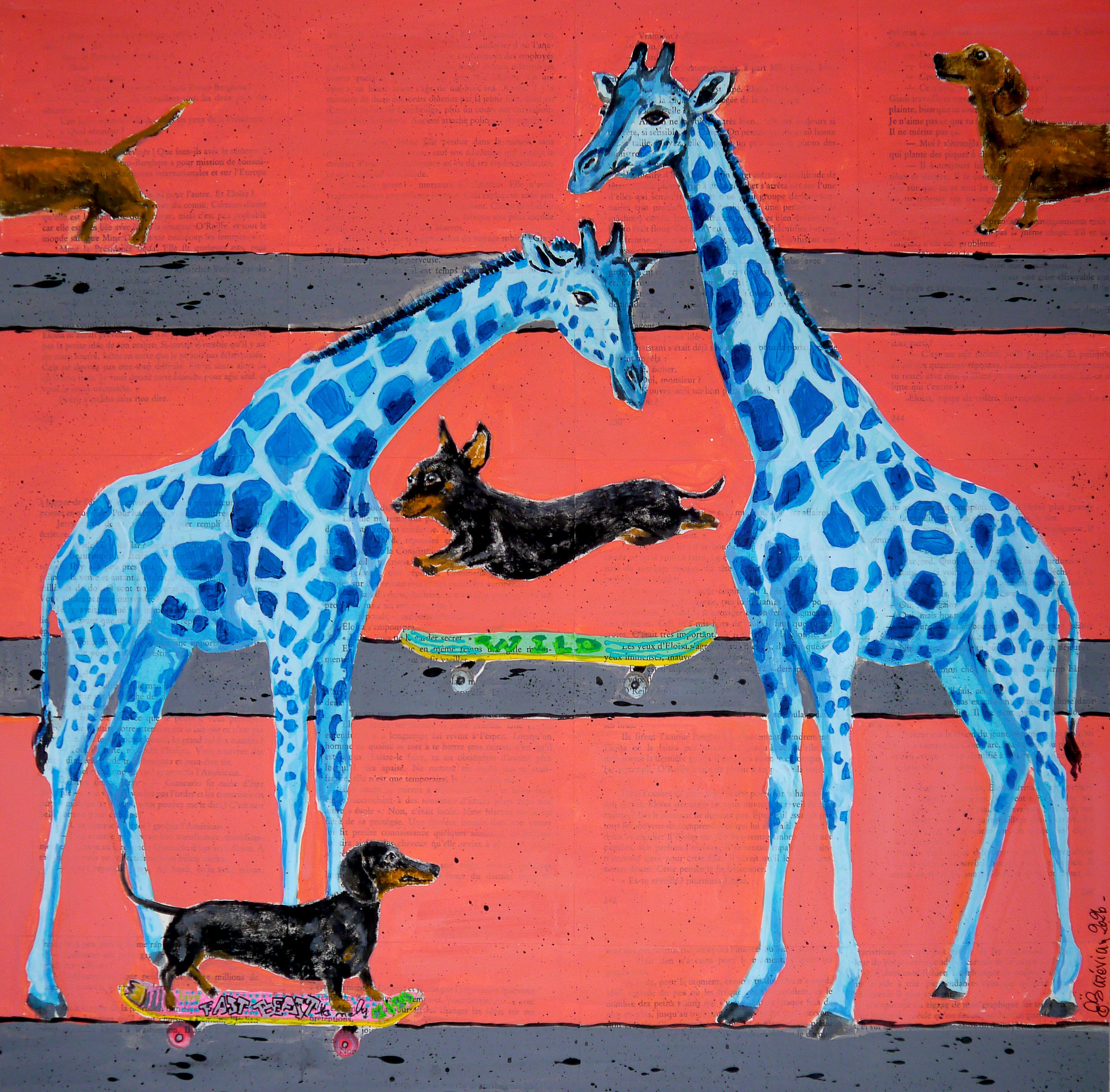 Canvas, Latex, Ink, Mixed Media, Spray Paint, Acrylic