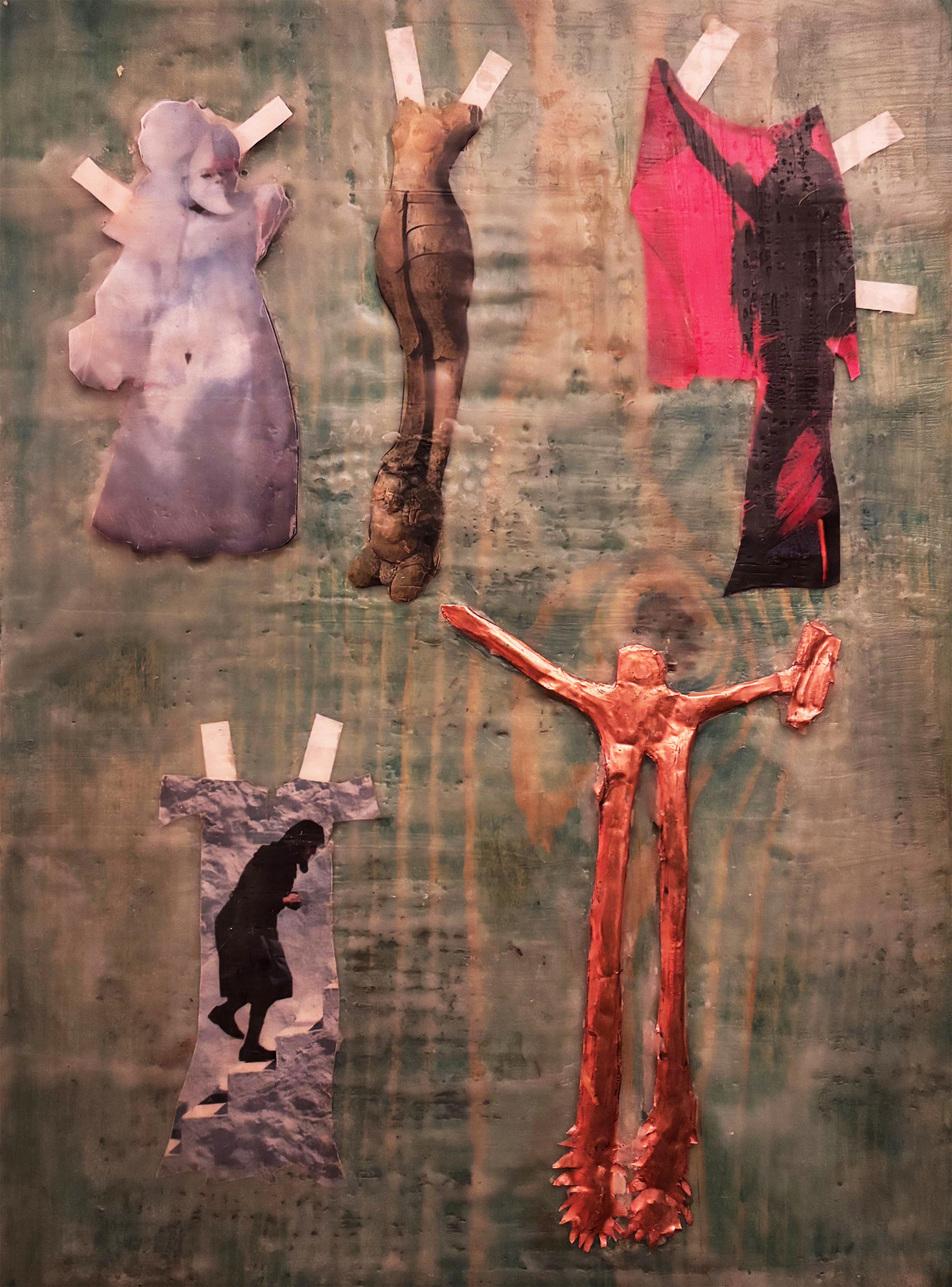 Glue, Mixed Media, Oil, Spray Paint, Acrylic
