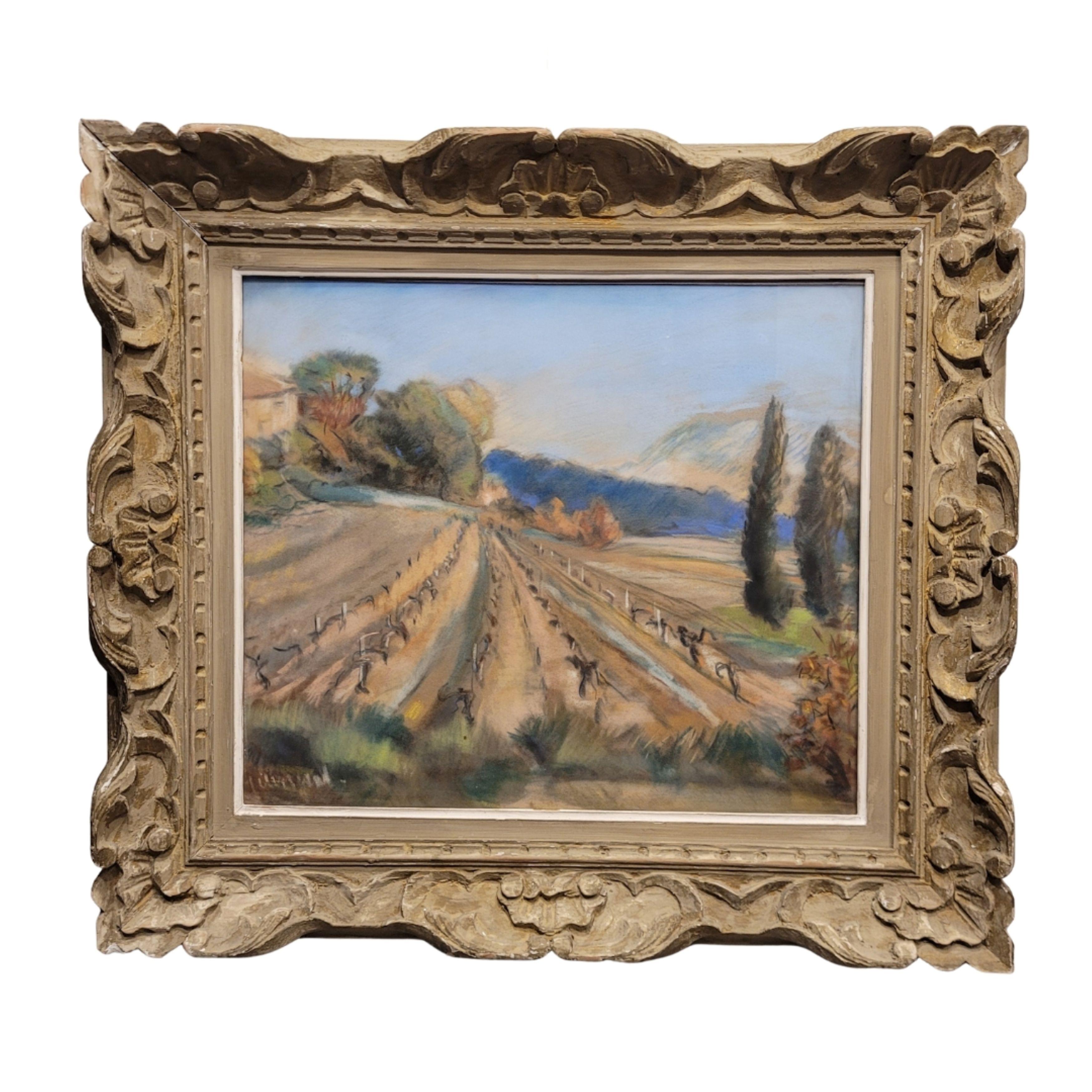 The painting combines naturalism with the wash method of watercolour painting and a reduced palette which allows for a rich harmony of shadow and light. Although appearing to simply utilize monotone colours, closer inspection reveals splashes of quite vivid colours; the yellow on the horizon, a deep crimson on the trousers of one of the figures, blue in the nets etc. The colour is subtle but adds a richness to the overall composition implying that this artist has received an academic training; knowing how to get the most from the materials.