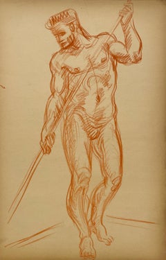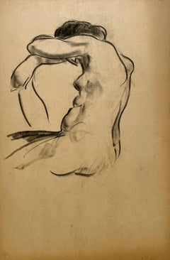 A Fine 1930s, Modern Academic Figure Study Drawing of a Standing Male Nude Model by Notable Chicago Artist, Harold Haydon (Am. 1909-1994). An exceptionally well executed, early 1930...