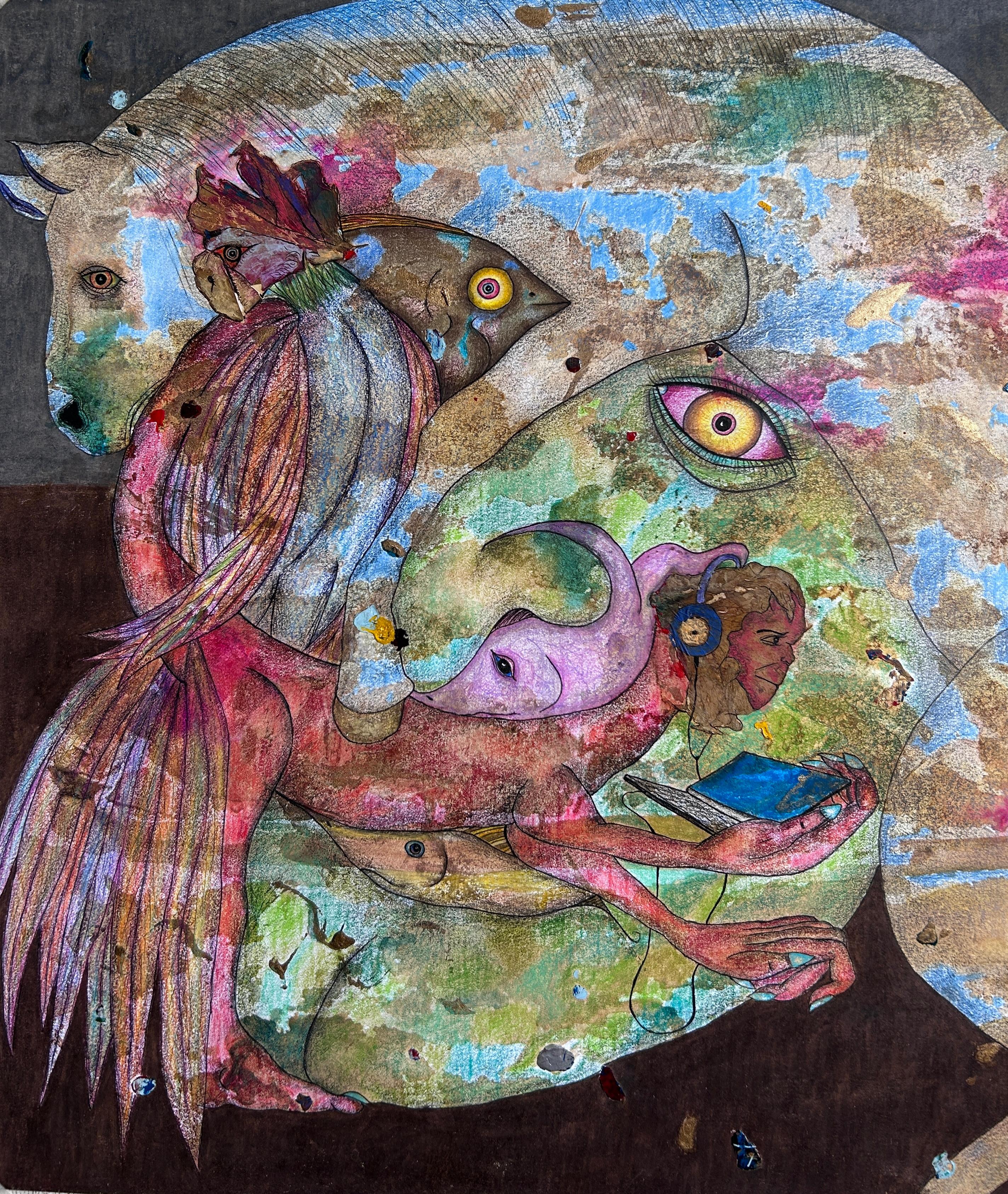 Oil Pastel, Ink, Acrylic, Watercolor, Handmade Paper