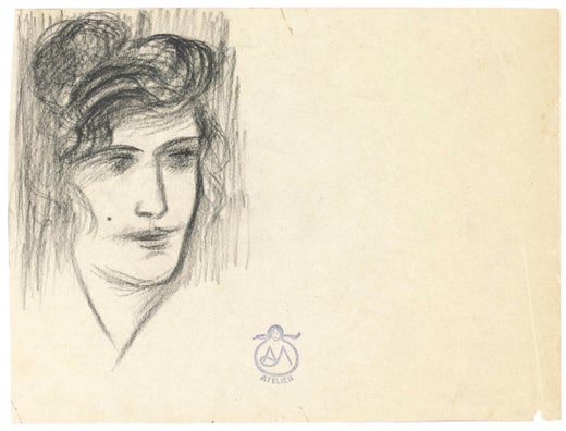 "Portrait" is an original drawing in pencil on paper, realized by Marie Louise Lenoir (1883-?)