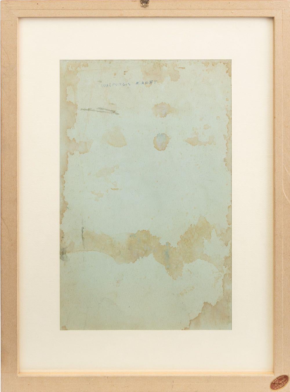 German School, "Walpurgis Nacht" [Walpurgis Night], Gouache on Paper, depicting ghostly humanoid figures floating over a twilight landscape scene, apparently unsigned, titled to verso, wood frame. Image: 17" H x 11" W; frame: 24.5" H x 18.25" W x .75" D. Provenance: From the Collection of Laura and Lewis Kruger.