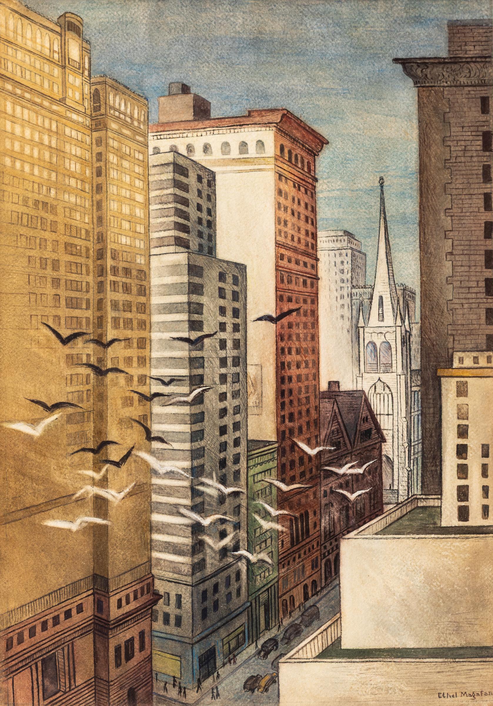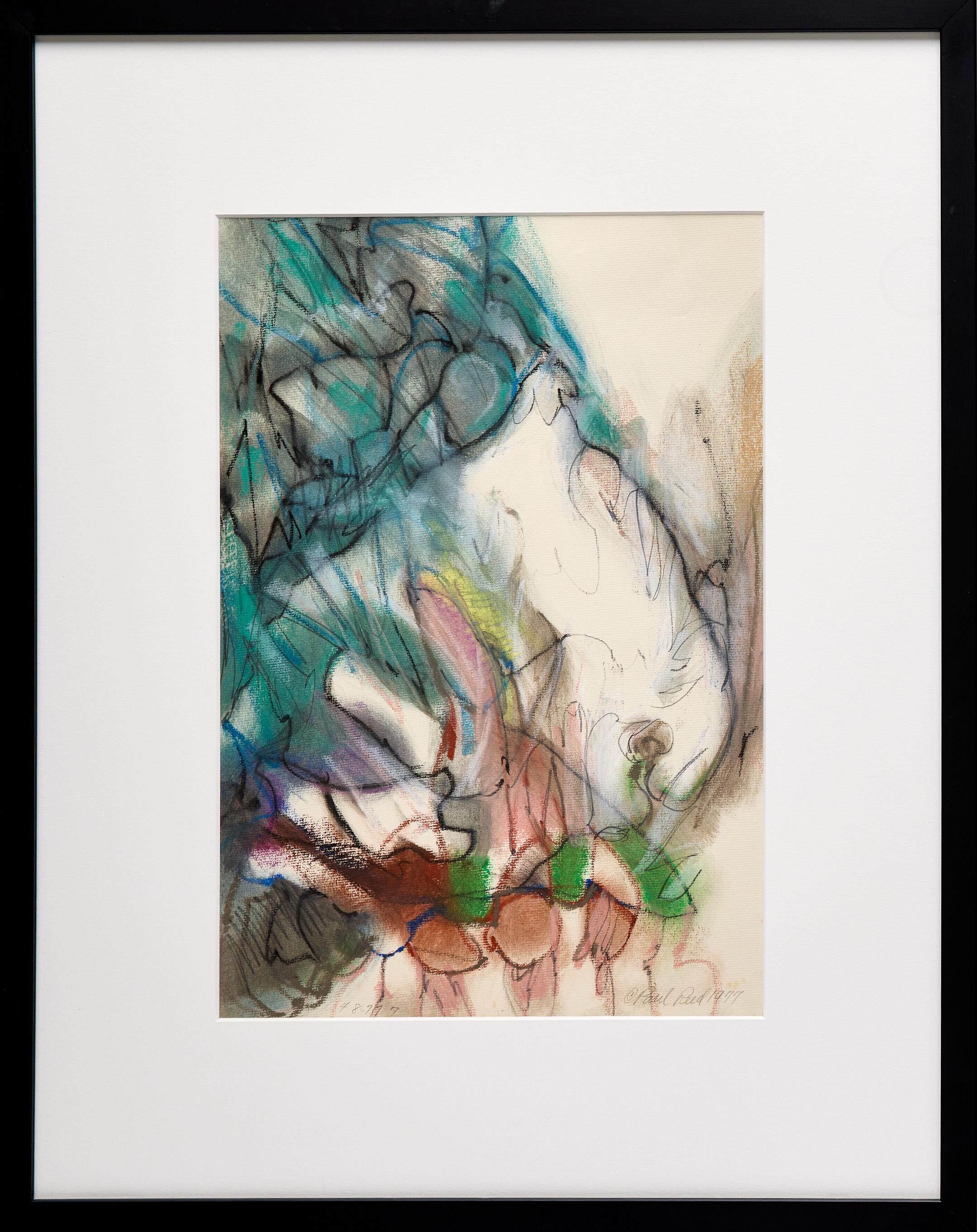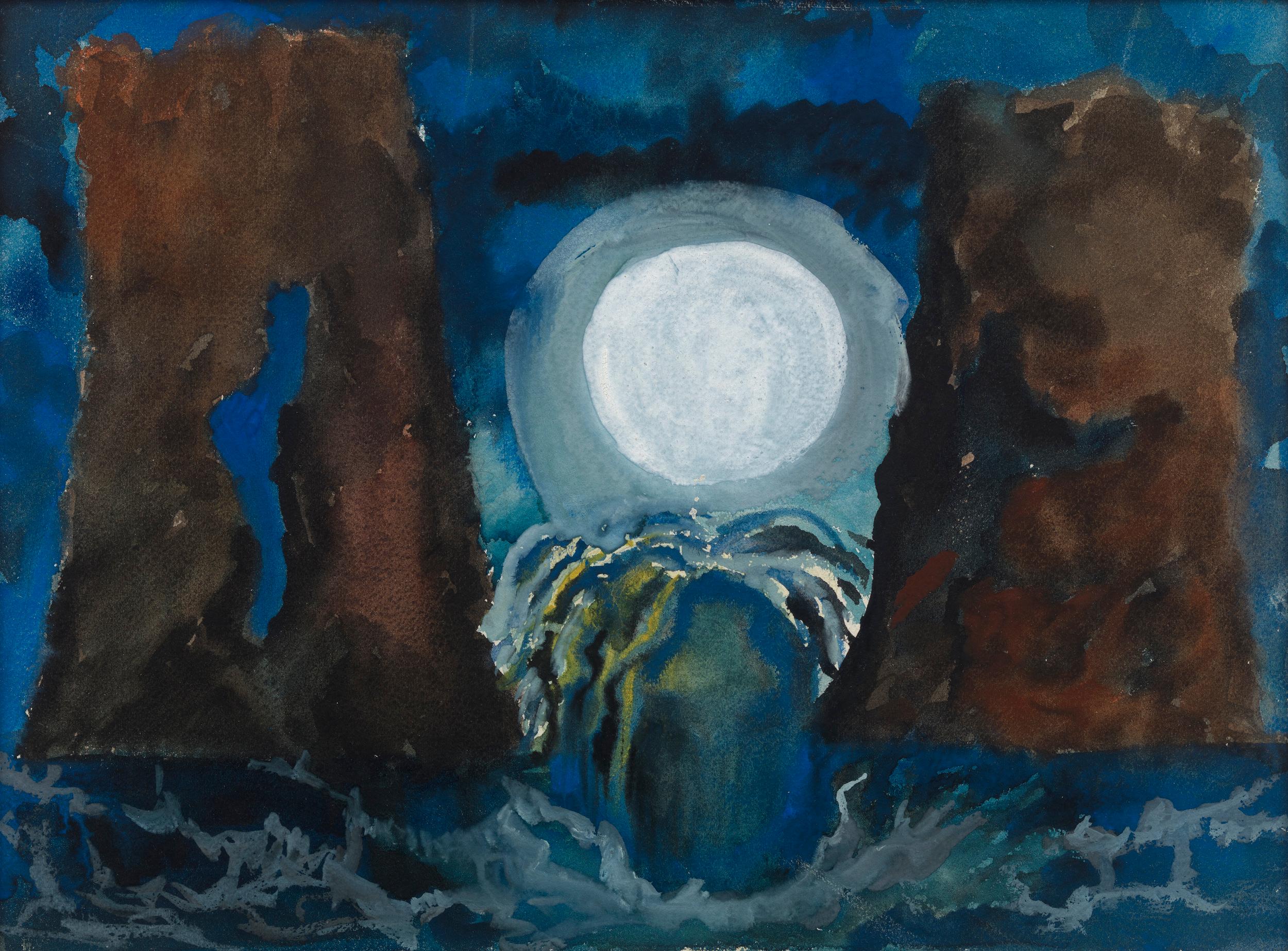 A fabulously evocative watercolour painting showing fisherman, struggling against the elements. This is Bangladesh, 1979, not long after Independence, when the focus was on the working classes, the everyday struggle to make a living and when the artists depicting these times were concurrently exploring and establishing a new aesthetic.