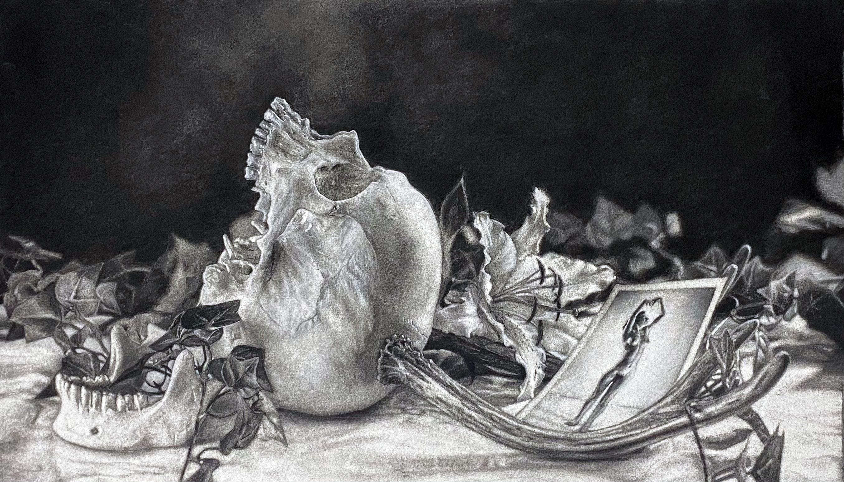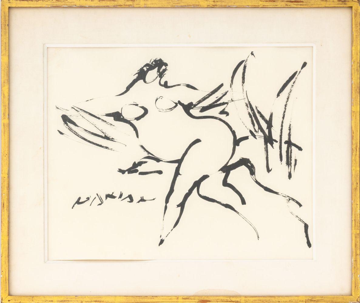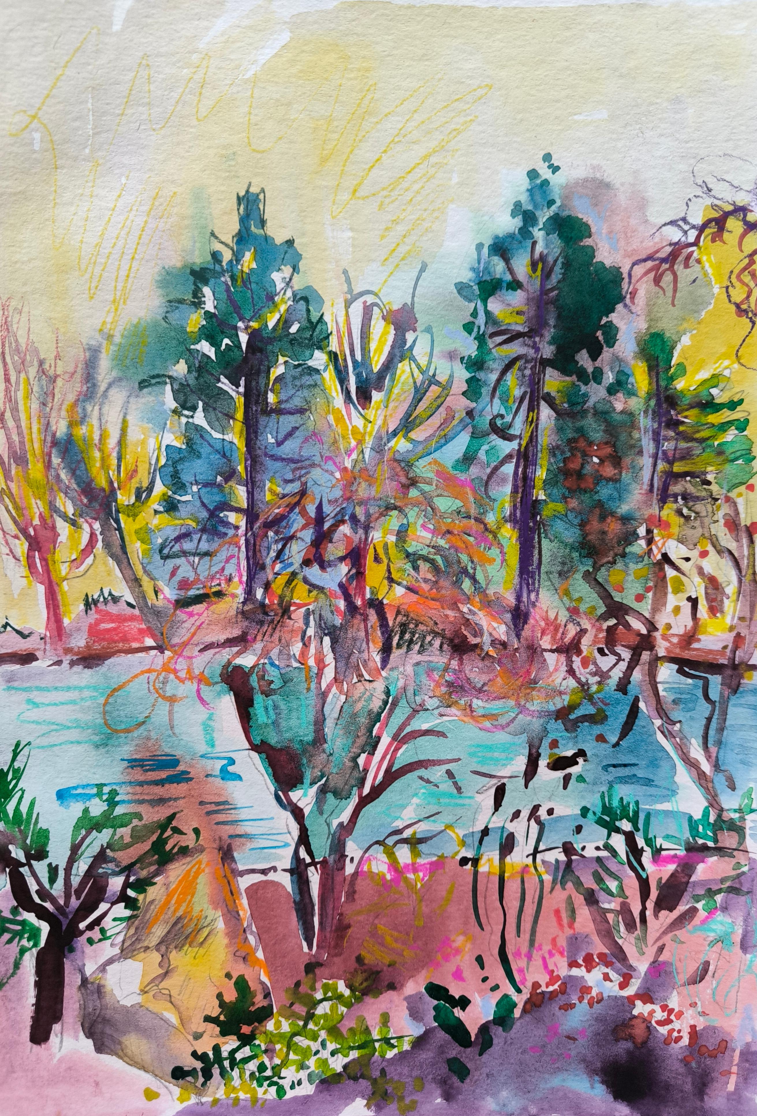 Add to this the beautiful watery effect from the wash on the paper and we can immediately see references to Bengal school art techniques. It is not surprising that the artist employs this medium. Neuroarthistory points to the rich heritage of Bengal school painters and the fascination with wash technique emanating from their connection to the water which provides the backbone for the region. From supplying food; fish and seafood, to transportation, agriculture and festivities. Bengal and Bangladesh live and die with the water.