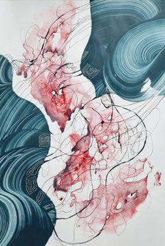 1950s American Modern Pen Drawings and Watercolor Paintings