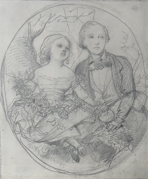 A wonderful circa 1840 charcoal, gouache, and watercolor portrait group of William Reginald Courtenay (28 Oct 1832 – 21 Nov 1853), Edward Baldwin Courtenay, 12th Earl of Devon (7 May...