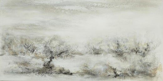 Camouflaged, transitioning into hiding, into the shadows showing only a glimpse of what is underneath. A composition of acrylic paint, plaster, sand and pastels, inspired by the vola...
