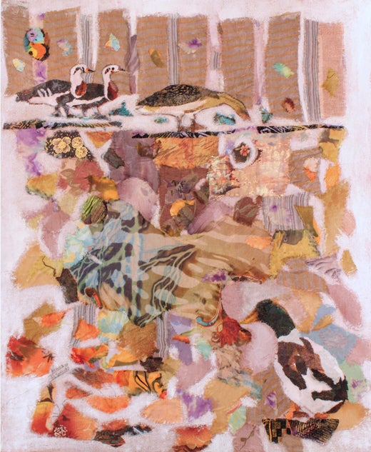 "Birds of the Temple" Abstract Collage 35" x 41" inch by Neama El Sanhoury