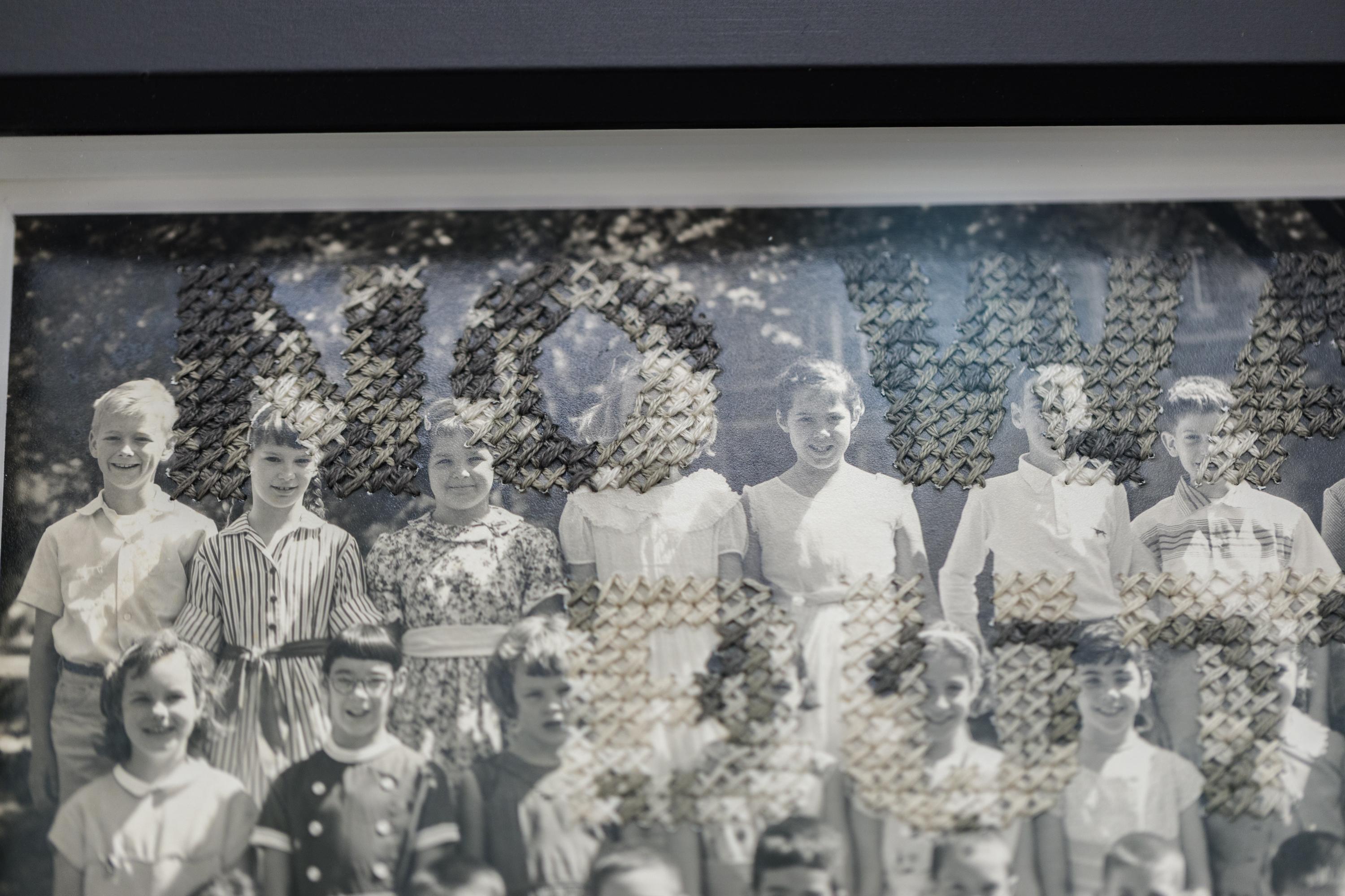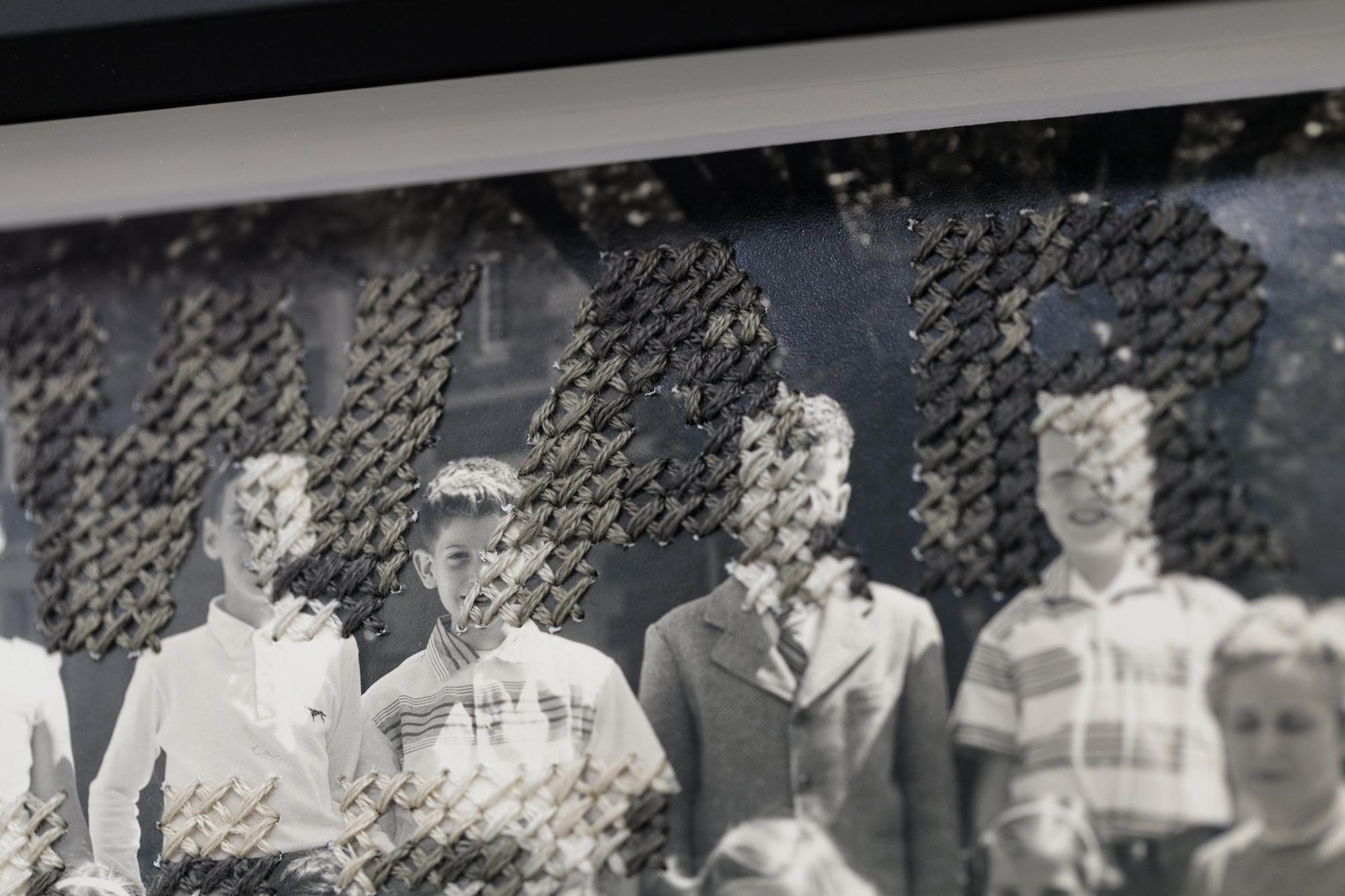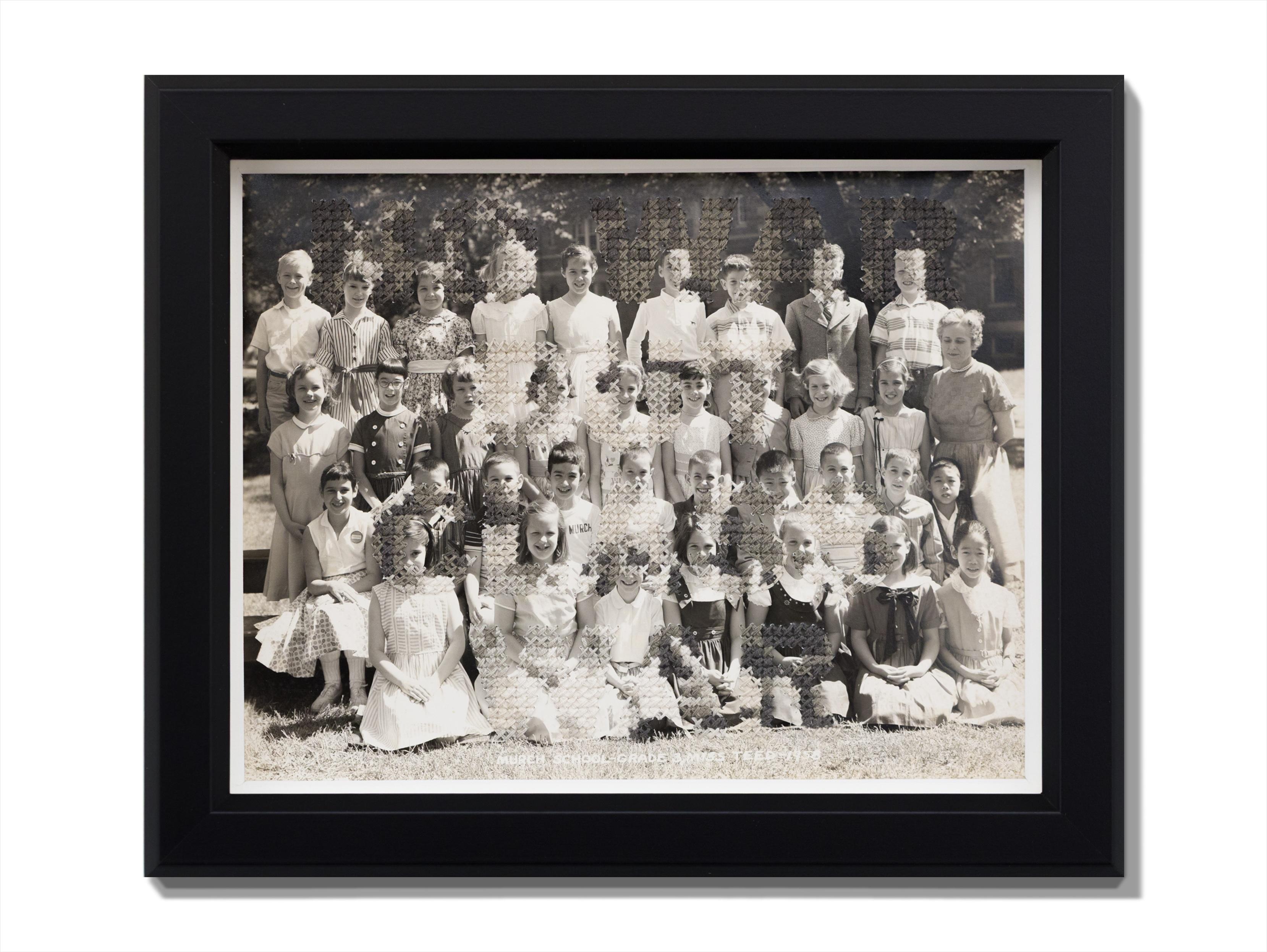 This piece titled "Class War" is an original piece by Han Cao and is made from hand embroidery on found vintage class photograph from 1958, with cotton and silk thread. This piece m...