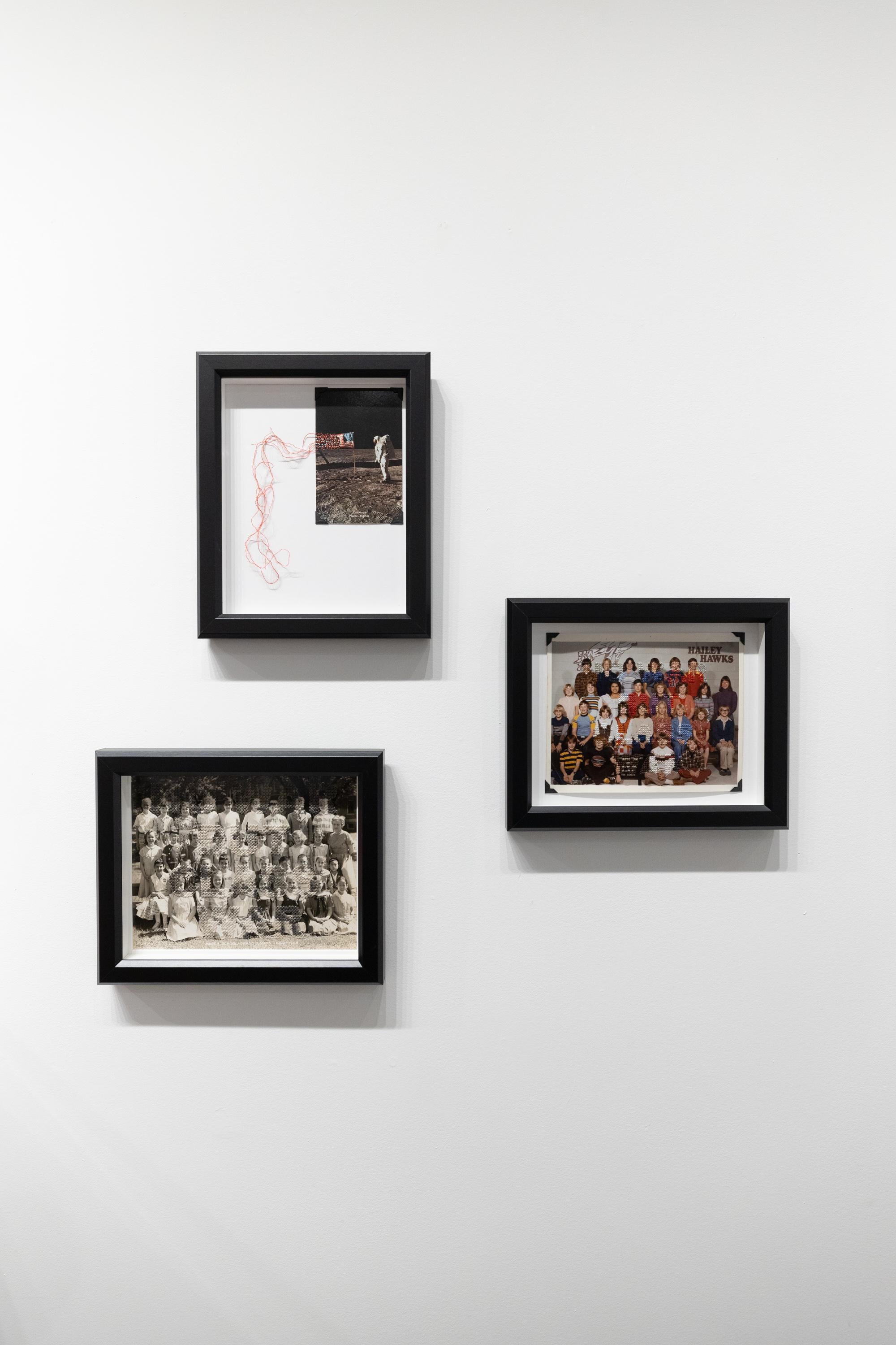 This piece titled "Self-Reflection on March 12, 1972" is an original piece by Han Cao and is made from embroidery on a vintage photograph. This piece measures 11" x 9" framed and is ...