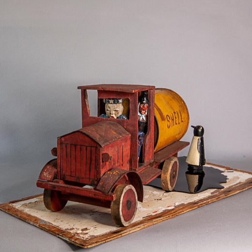 Kat Flyn is a self-taught assemblage artist working presently out of San Diego. She began her career as a costume designer in Southern California. Over the years she amassed a trove of artifacts and collectibles which she began using to create assemblage art in the 1990s. In 2000 she sold her business and moved to Cuyamaca, a remote community in the mountains outside of San Diego to devote herself exclusively to her artwork. In 2003, her work was interrupted when the Cedar Fire swept through San Diego County and destroyed the forest, her home and studio along with almost all of her collections and works of art. Following the fire, she relocated to San Francisco, where she spent a decade concentrating on her art in her studio in SOMA and exhibiting at galleries in the Bay Area. In 2015, she returned to San Diego and now works out of her studio in La Jolla, exhibiting there and in Los Angeles. Flyn refers to herself as an Assemblage Sculptor and her works as Political Art or Protest Art. She separates herself from other assemblage artists in that she only employs saved as opposed to found objects in her work; and her pieces always have a political or cultural narrative to them rather than being surreal or abstract. She also constructs or refashions many of the pieces which she uses in her art, a soft drink box into a tenement building (Affordable Housing 2017), a jewelry box into a wheelchair (Last Lily Foot 2016), an old shoe shine box into a hearse (Katrina 2018). The result is her work is closer in appearance to Folk Art than Assemblage Art.
