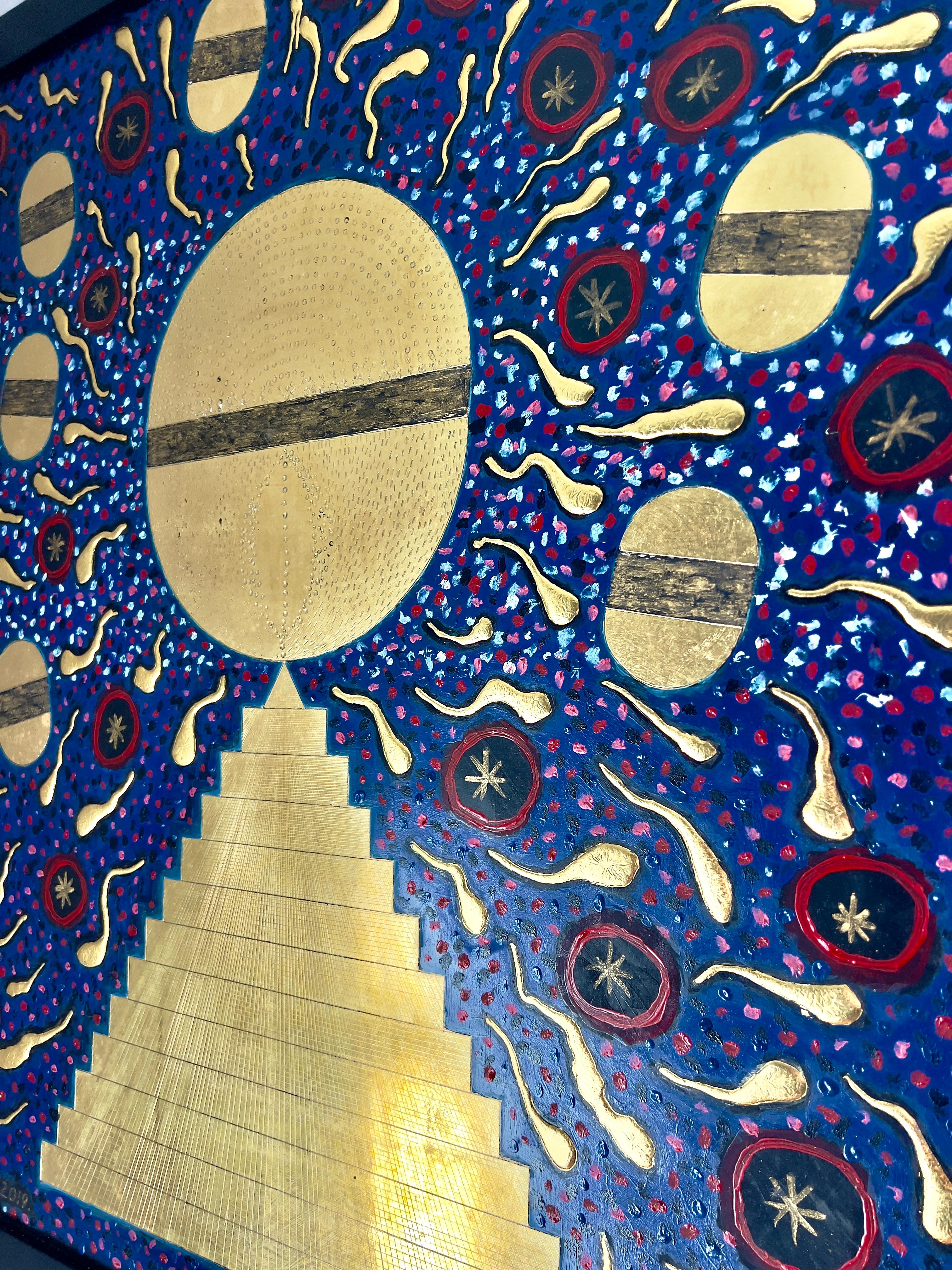 “Ascension of Light” reveals the path of the soul striving for higher enlightenment and union with the divine source. The central golden circle represents the core of the universe — a source of energy and knowledge that draws every seeker of truth. It embodies the light that illuminates the way, awakens inner strength, and calls one toward self-transcendence.