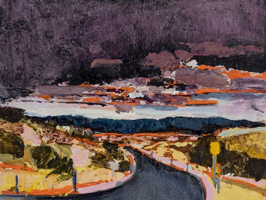 The Long Way 10 is part of the “Path to Eminence” series by Meghan Wilbar. During the pandemic, the uncertainty and isolation led Wilbar on a new series of work depicting the roads that lead into an unknown future. Concentrating on a stretch of Highway 96 in southern Colorado, she returned to walk, draw and absorb the change of form and color at the point where day becomes night. Just as the clouds form and dissipate, Wilbar's work reflects both the strength and fragility of our fleeting moments of time.
