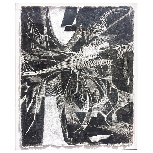 This is a mixed media monoprint titled Homage a Sam (I first thought it was for Sam Gilliam but the artist told me it was for Sam Francis. He has done a number of these Homages as I have found a New York Times article referencing a "cast paper folded into an airplane shape by Richard Royce serves as an homage to the late sculptor Alexander Calder".Richard Royce, born New York, 1941.