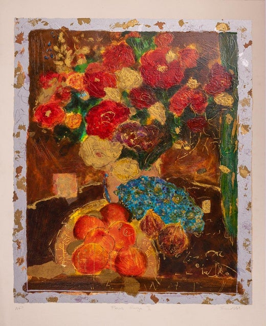 Still Life is an original mixed media, realized by Bernadette Kelly in about 1980 s. Hand signed on the lower right margin