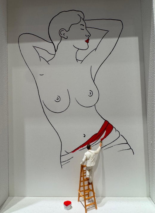 Since 1986 Volker Kuhn combines his inexhaustible creativity and his motto "just create it" into art objects: Snapshots on little stages, that put a smile on the viewer's faces. These three-dimensional masterpieces display, perhaps with a little smirk, the scenes of life that we encounter from time to time or showcases homages to great works of art. Volker Kuhns picture language is universally comprehensible, which is one of many reasons why his art has garnered international acclaim. His works are carved out by hand and painted with painstaking accuracy yet with a lightness of touch. As it is, this art in boxes is art to go: unique art collector's items from a collector's hands, whose common denominator is their focus on the pure experience of the thing-in-itself which, entering a contrastive or even antithetical relationship to the symbolic OTHER, develops a strong semantic relationship previously unperceived. Thus exploited to their utmost potential, the showcase scenes always cut right to the chase, they mostly hit the mark, and sometimes they may strike a nerve.