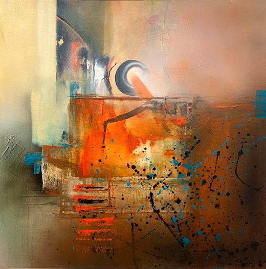 Artist Yamilet Sempe paints boldly graphic abstracts, visibly influenced by modernist aesthetics. A keen believer in the power of signs, she incorporates symbols of mysticism and spirituality in her work. Her compositions feature dramatic palettes—intentionally using orange to represent enthusiasm and positivity. "I am only an instrument of the creator," says Yamilet. Spending her formative years in Cuba and France, she immersed herself in the presence and influence of renowned artists of culture. After years of working as a veterinary nurse, it was not until her mid-forties she chose to dedicate her time to painting, her true passion. She migrated to Florida and devoted herself to her practice, working at her home studio neighboring the coast. Yamilet splits her time between the United States and Paris, allowing her shared vision of diverse cultures. Her work has been featured in esteemed exhibitions in Europe and the USA.
