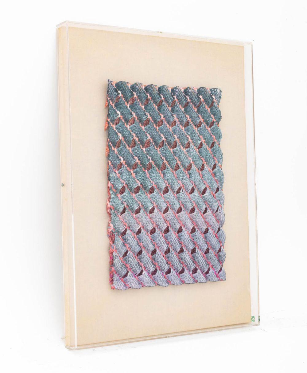 Lia Cook (American, b. 1942), "Little Tunnel E", 1990, signed, dated, and titled verso, woven fiber in shadowbox frame.