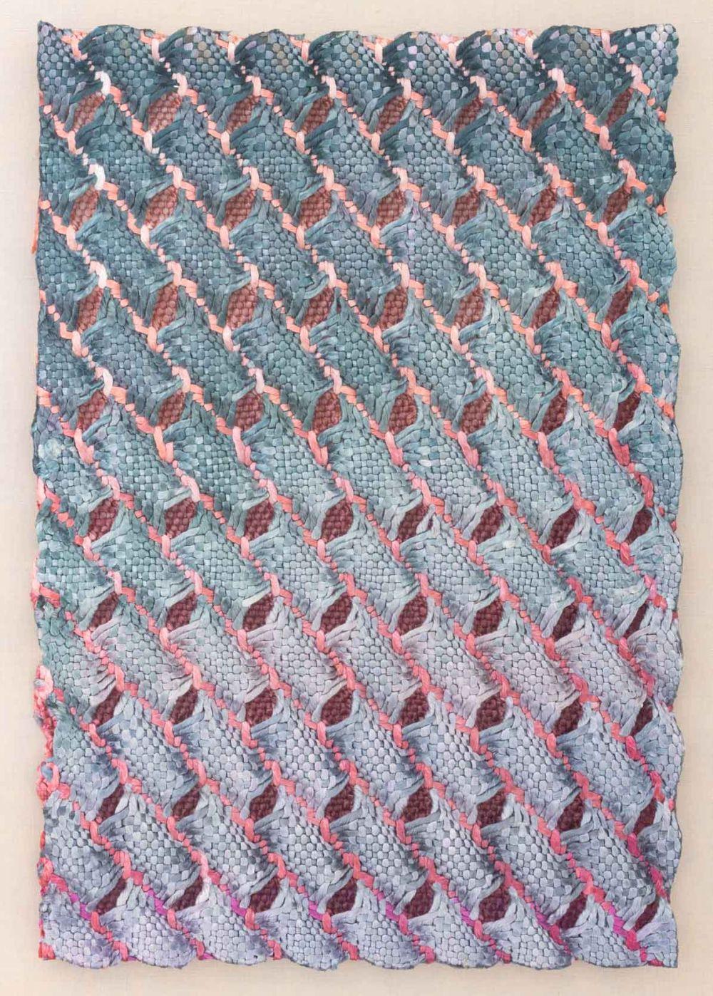 Rooted in observation and fueled by a curiosity about the behavior of objects and handicraft processes, Carly Glovinski makes paintings, sculpture and works on paper that often teeter between representation and abstraction. Letting craft techniques like weaving inform her mark making, her work mimics everyday objects and highlights geometric pattern and structure found in textiles, while exploring the resourceful attitudes associated with domestic craft and rural communities that prioritize placemaking in concert with nature. She received her BFA from Boston University in 2003 and is represented by Morgan Lehman Gallery...