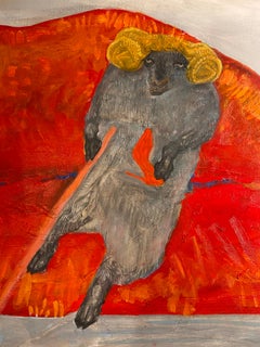 A wonderful composition of one of Slonem's most iconic subjects, Bunnies. This piece depicts a gestural figure of a black bunny on a Wild Orchid Pink background with thick use of pai...