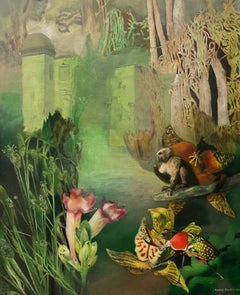 Hunt Slonem, American, included in 250+ museum collections Unique oil on wood painting, artist's antique frame, signed and dated verso Inspired by nature and his 60 pet birds, Hunt...