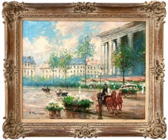 "La Madeleine" Impressionist Parisian Street Scene Oil Painting on Canvas Framed