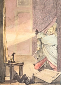 A Charming & Amusing 1950s Mid-Century Modern Watercolor of Paris Circus Tigers, Big Cats! A superb example of Chapin's love of animals, particularly cats, highlighting his talented...