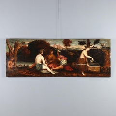 Antique Landscape Oil Painting with Women, French Impressionist Figurative Art