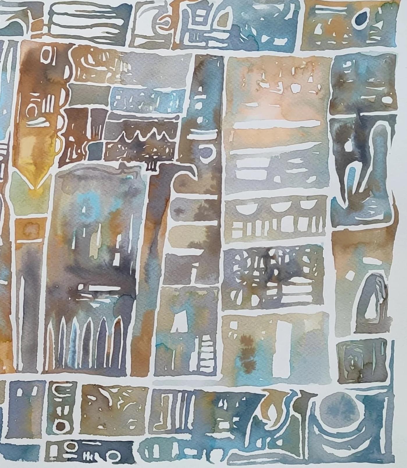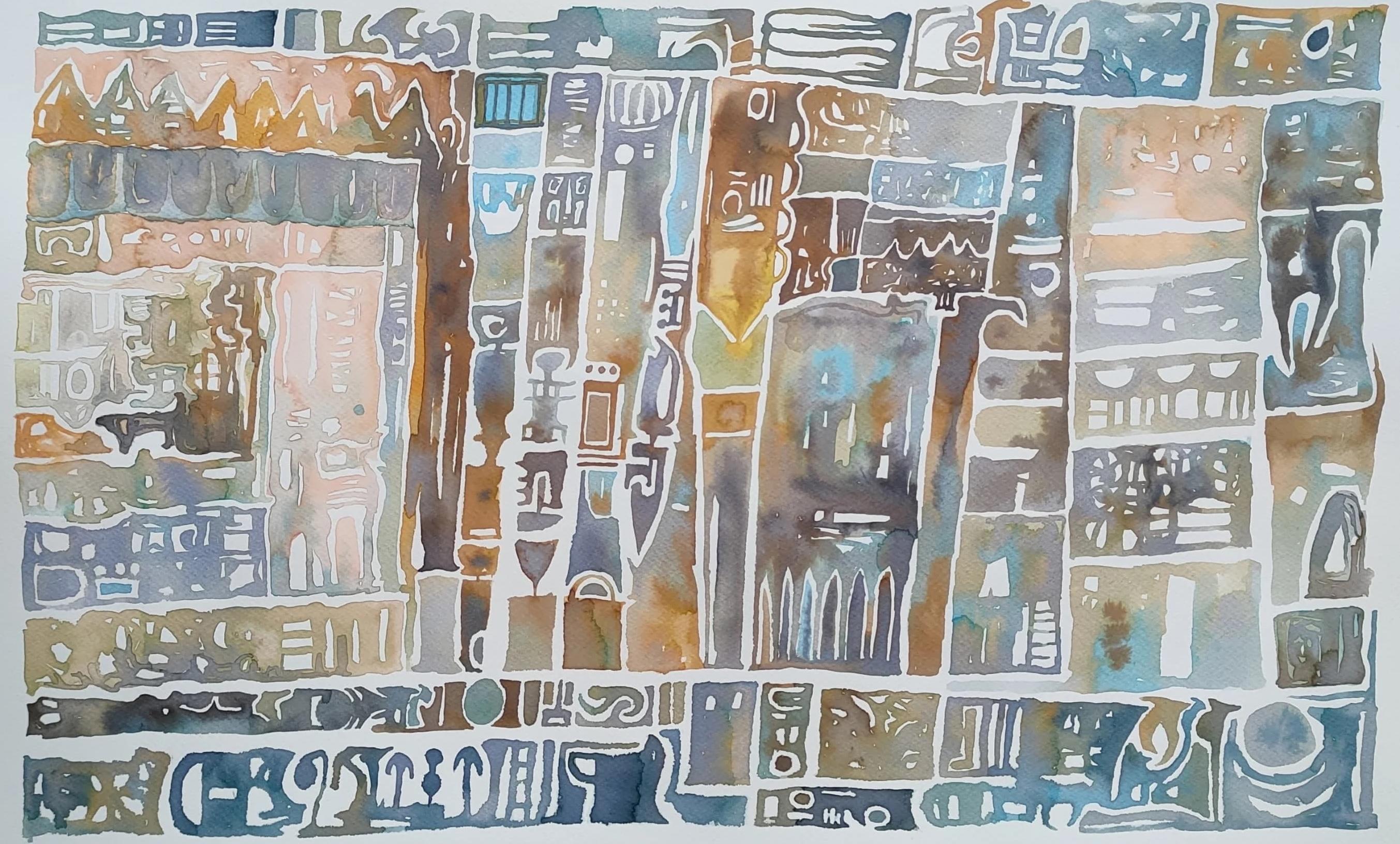 Ahmed Yousry"Glyphs II" Abstract Painting 20" x 28" inch by Ahmed Yousry2025