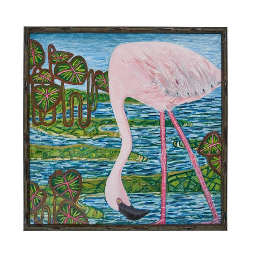 Large Framed Abstract Seascape Painting on Canvas. Acrylic Greens, Blues Pink