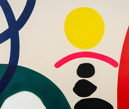 Aron Hill's practice is focused on a formalist type of painting that recalls aspects of minimalism and Color-Field paintings though with references to the figure throughout. They find conceptual company in the late modernist paintings produced particularly in Canada. The choice of primary colors and a restricted medium is a conscious restraint informed by Hill’s artistic influences such as Jack Bush and William Perehudoff. The work's graphic nature relies on the sheer flatness that this medium produces.
