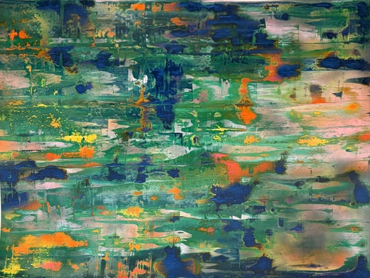 Abstract painting. Acrylic and oil on Acrylic mounted on metal. Finished with enamel to prevent yellowing if placed in the sun.