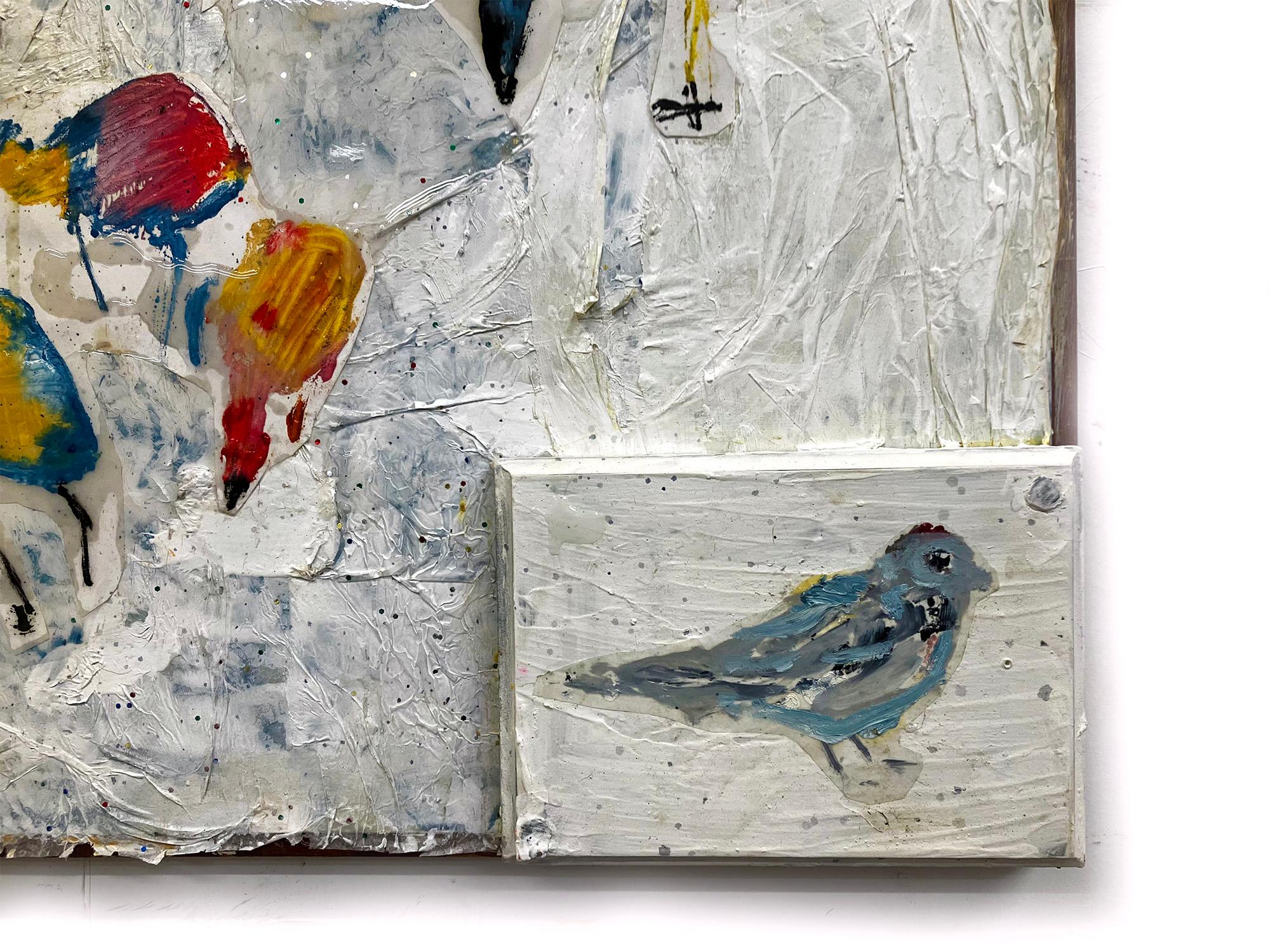 C. DimitriLyrical Miracle, abstract w birds ducks colorful mixed media painting2025